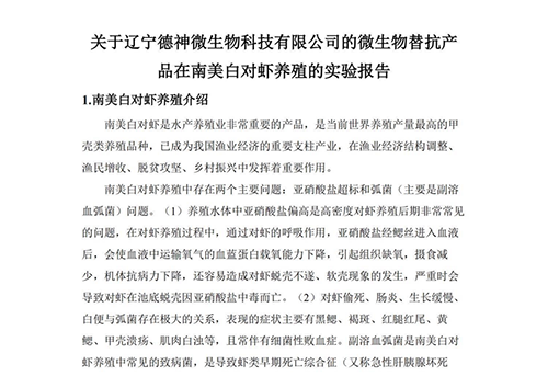 關(guān)于遼寧德神微生物科技有限公司的微生物替抗產(chǎn)品在南美白對蝦養(yǎng)殖的實驗報告